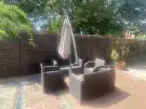 A kert az első két háznál közös a hátsó ház belső kerítéssel elhatárolt.